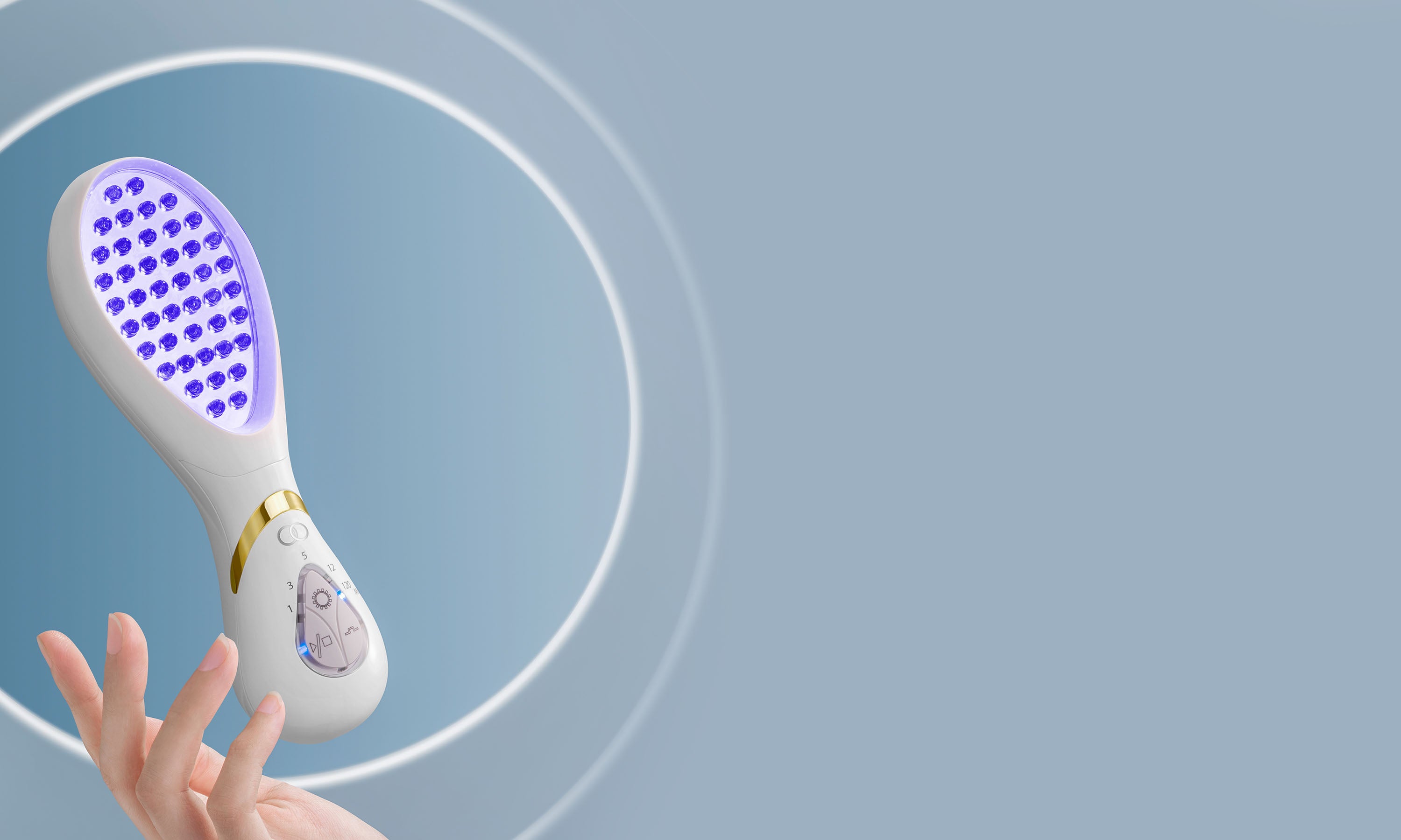 - Press timer button (centre) to set preferred treatment time (1 minute, 5 minutes, 12 minutes or 120 minutes)