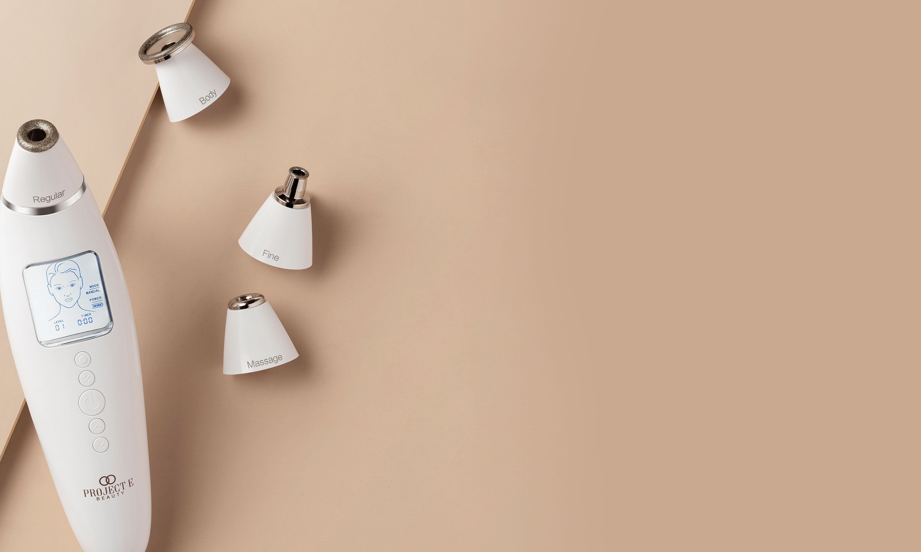 The simultaneous vacuum therapy effect suctions away excess oil and impurities to enhance the effect of microdermabrasion