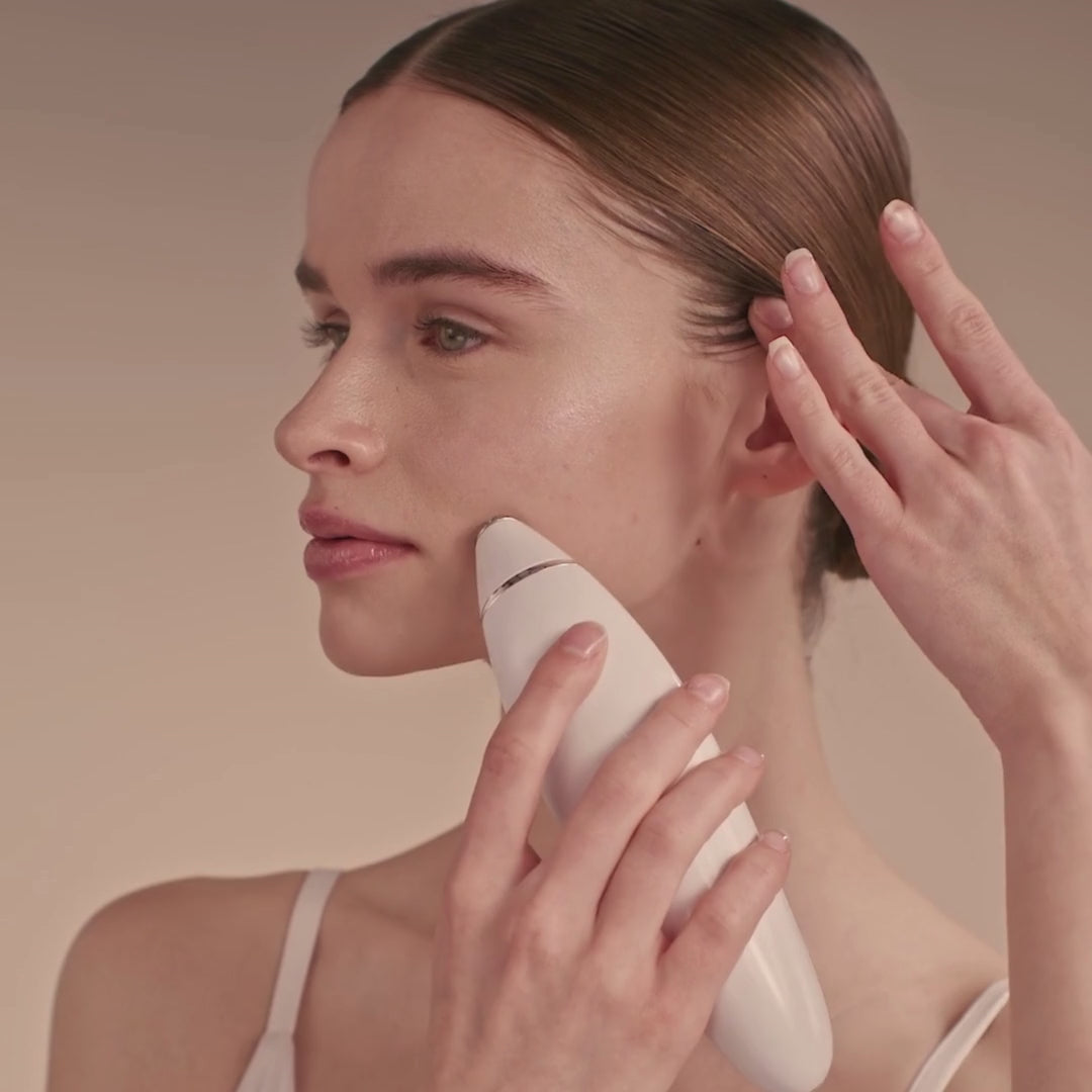 - Move the device gently over the treatment area while holding the skin taut with your free hand